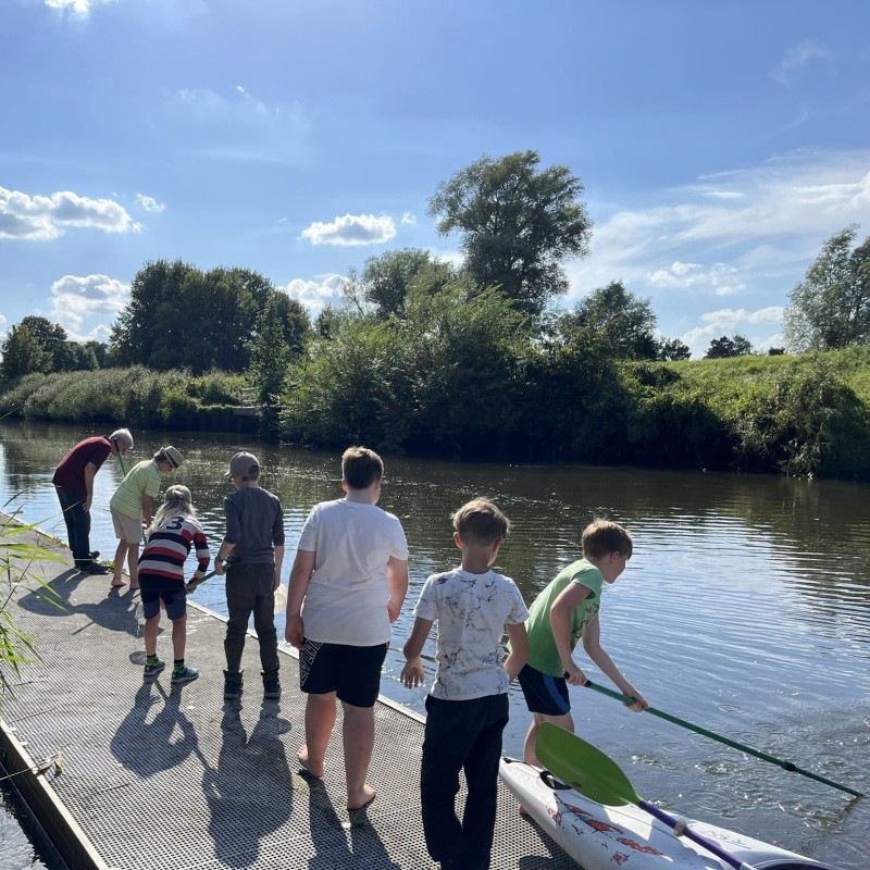 Unser Bootshaus an der Oste bot den perfekten Rahmen für einen Tag voller Bewegung, Entdeckungen und gemeinsamer Erlebnisse. So wagten die Kinder mutig ihre ersten Paddelschläge im Kajak und auf dem SUP-Board. Mit viel Begeisterung erlebten sie, wie spannend und spaßig Wassersport sein kann.