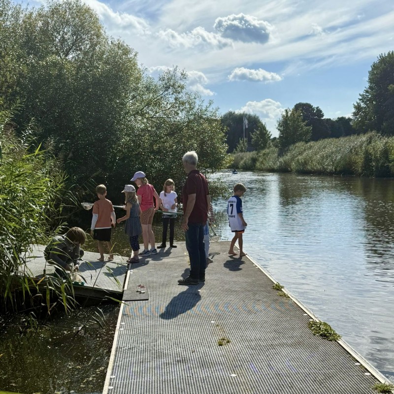 Doch nicht nur sportlich waren die Schülerinnen und Schüler aktiv. Mit Keschern ging es an die Entdeckung der faszinierenden Flora und Fauna der Oste. Kleinste Wasserlebewesen wurden vorsichtig gesammelt, anschließend unter dem Mikroskop betrachtet und bestimmt. So lernten die Kinder spielerisch, welche Artenvielfalt unsere heimischen Gewässer beheimatet - wie wichtig der Schutz von Gewässern und Umwelt ist.